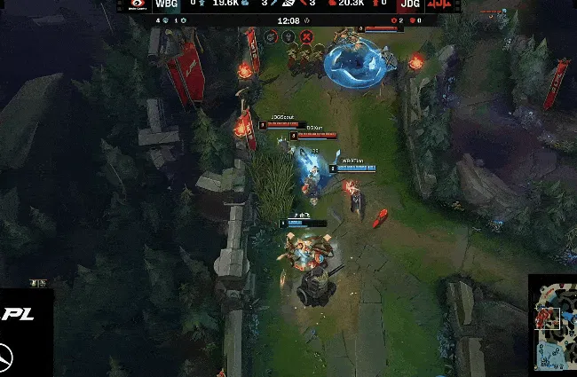 12分钟,突如其来大节奏,JDG众人强势出击逐个击破WBG四人完成0换4